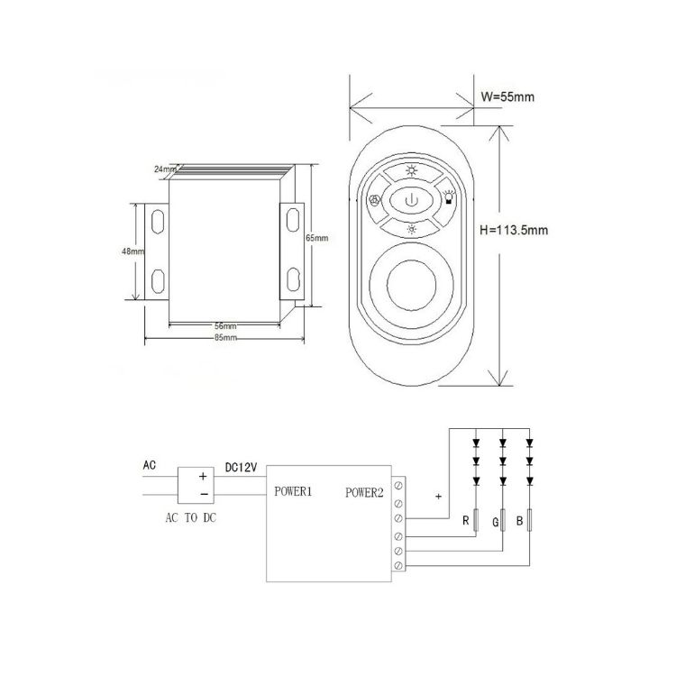 Controller LED RGB touch multifunzione con tecnologia PWM, controlla i LED con 4 fili (anodo comune). Oltre 640.000 combinazioni di colori e 15 modalità di cambio automatico.