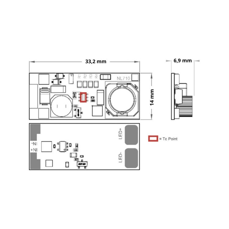 CONV. STEPDOWN NUVLO 24V-48V TARABILE TRAMITE RIMOZIONE RESISTENZE (1050,700,500,350MA), CON SISTEMA DI RIDUZIONE DEL VALORE DI CORRENTE IN RAPPORTO ALLA TC THERMAL THROTTLE
