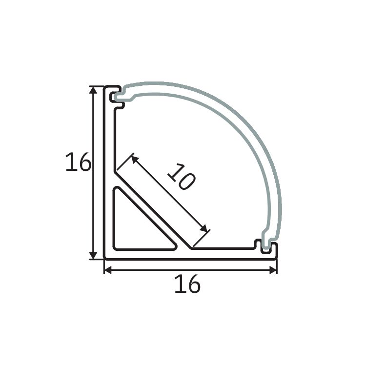 Profilo angolare in alluminio anodizzato per montaggio ad angolo o soffitto con diffusore in policarbonato opale. Adatto a strisce LED fino a 20 W/m e 10mm di larghezza.