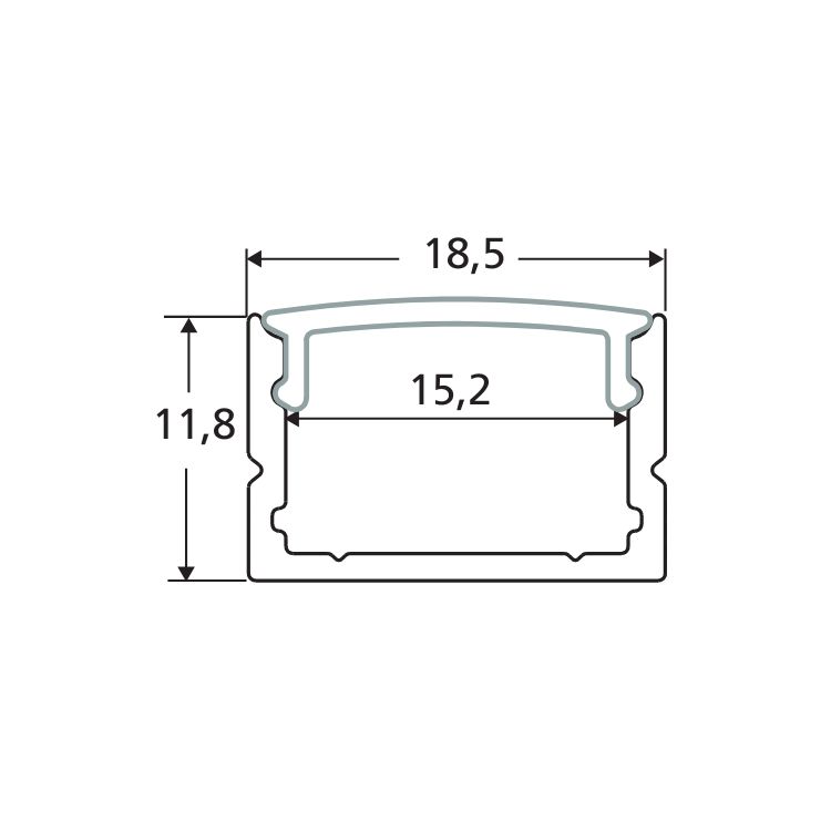 Profilo led in alluminio anodizzato per montaggio superficiale con diffusore in policarbonato opale. Adatto a strisce LED fino a 20 W/m e 15mm di larghezza.