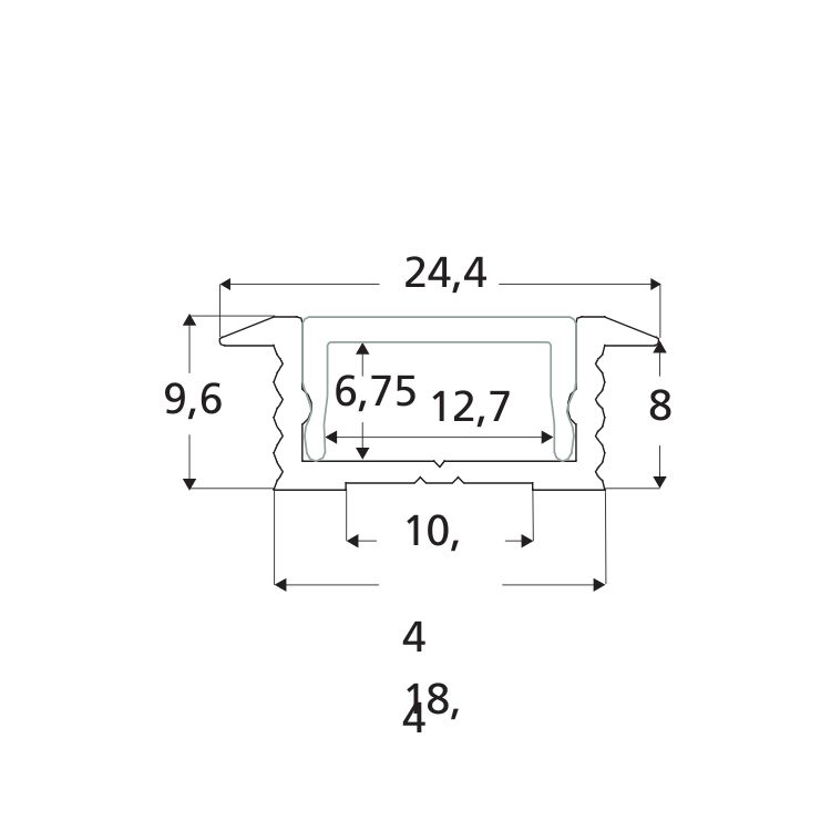 Profilo led in alluminio anodizzato per incasso con diffusore in policarbonato opale. Adatto a strisce LED fino a 20 W/m e 12mm di larghezza.