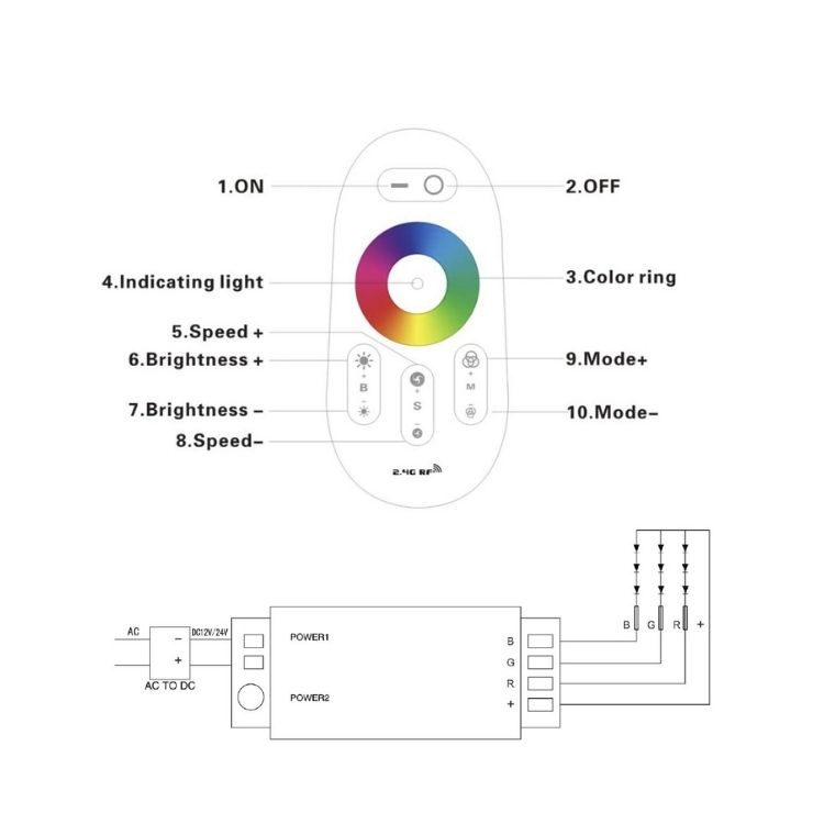 È dotato di funzione memoria (ripristina le impostazioni precedenti all’accensione) ed è ideale per strisce LED RGB. Grazie alla tecnologia wireless 2.4G garantisce trasmissione a lunga distanza, elevata velocità di comunicazione e forte resistenza alle interferenze.