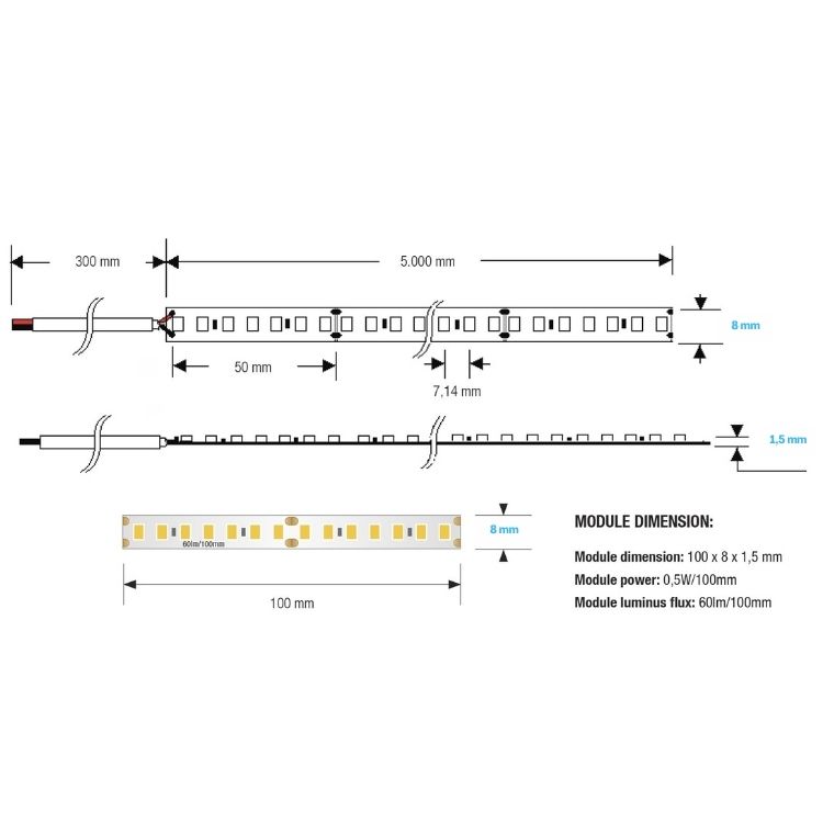 - Potenza: 5 W/m