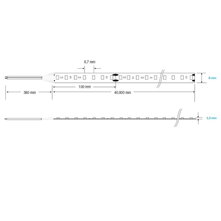 Striscia LED 48V in bobina da 40 metri, adatta a ogni esigenza di illuminazione decorativa e funzionale. Disponibile in due tonalità: luce calda (2700K-3000K) e luce naturale (4000K), questa strip LED 48V garantisce un’illuminazione efficiente (850 Im/m) e versatile per ambienti sia domestici che commerciali, con una resa cromatica elevata (CRI 90).